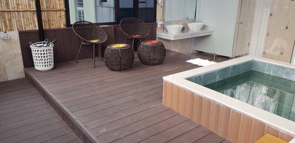 Do vậy gỗ nhựa ngoài trời được đánh giá là sản phẩm thân thiện môi trường.Với thành phần trên 50% là bột gỗ được nghiền mịn để sản xuất ra sản phẩm gỗ nhựa ngoài trời (gỗ nhựa composite), phù hợp với khí hậu Việt Nam, kháng nước, chịu được thời tiết nắng mưa.