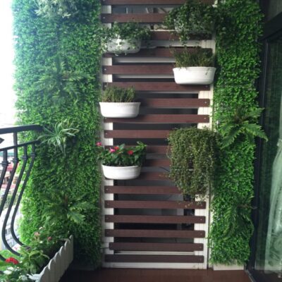 Tường cây giả tại ban công chung cư Gold Mark City – Hồ Tùng Mậu